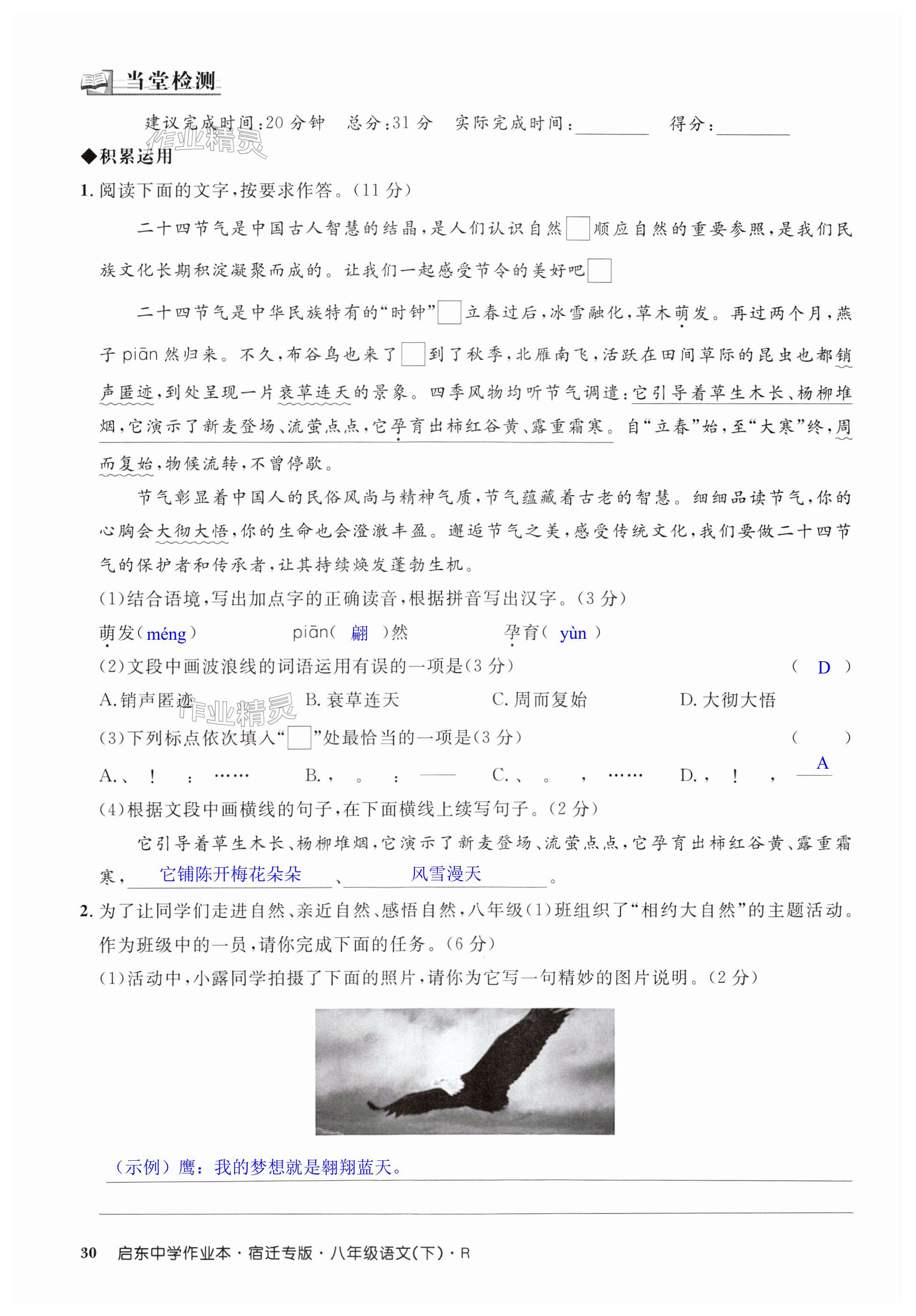 注:目前有些书本章节名称可能整理的还不是很完善,但都是按照顺序排列的,请同学们按照顺序仔细查找。练习册 2025年启东中学作业本八年级语文下册人教版宿迁专版 答案主要是用来给同学们做完题方便对答案用的,请勿直接抄袭。