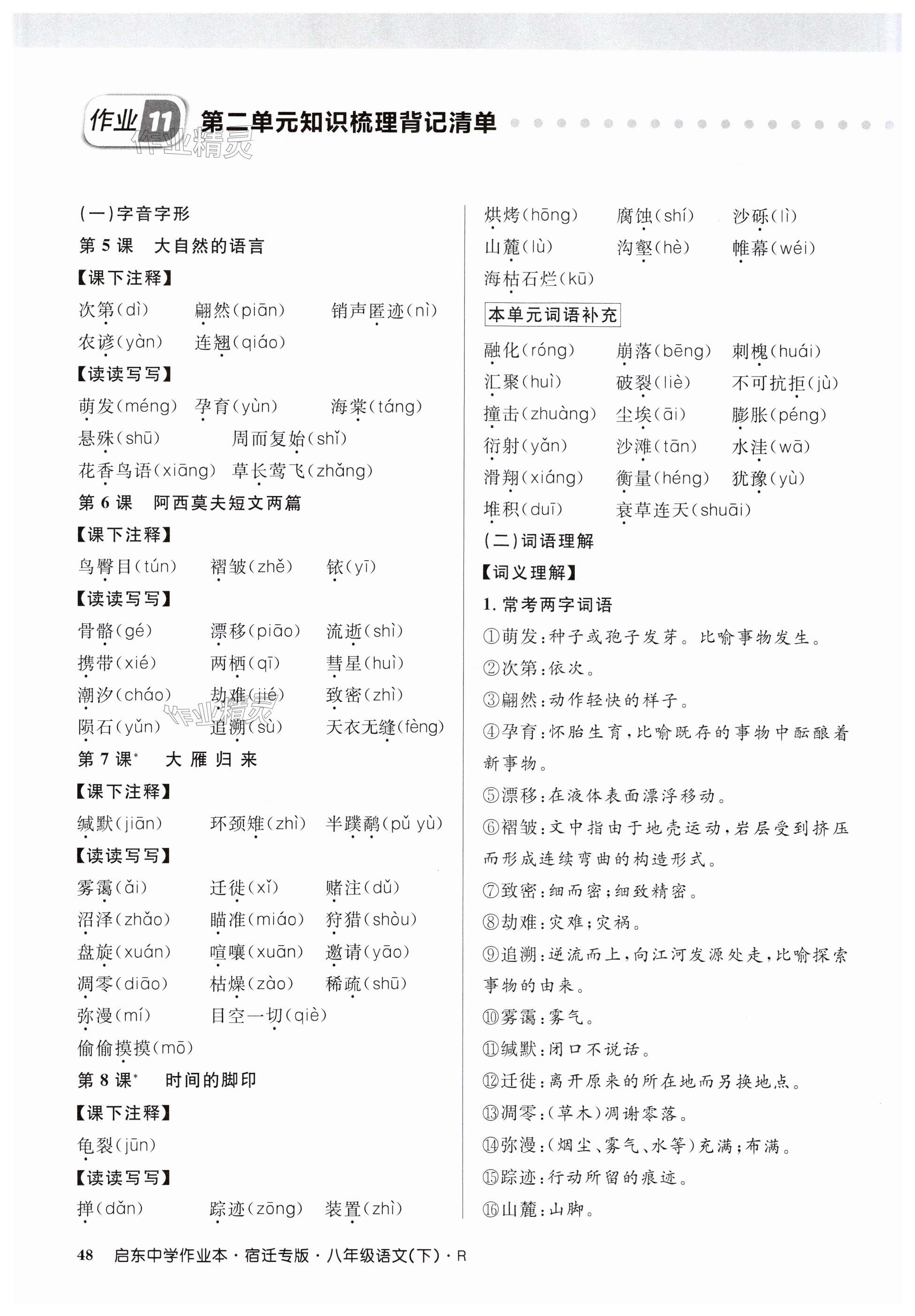 注:目前有些书本章节名称可能整理的还不是很完善,但都是按照顺序排列的,请同学们按照顺序仔细查找。练习册 2025年启东中学作业本八年级语文下册人教版宿迁专版 答案主要是用来给同学们做完题方便对答案用的,请勿直接抄袭。