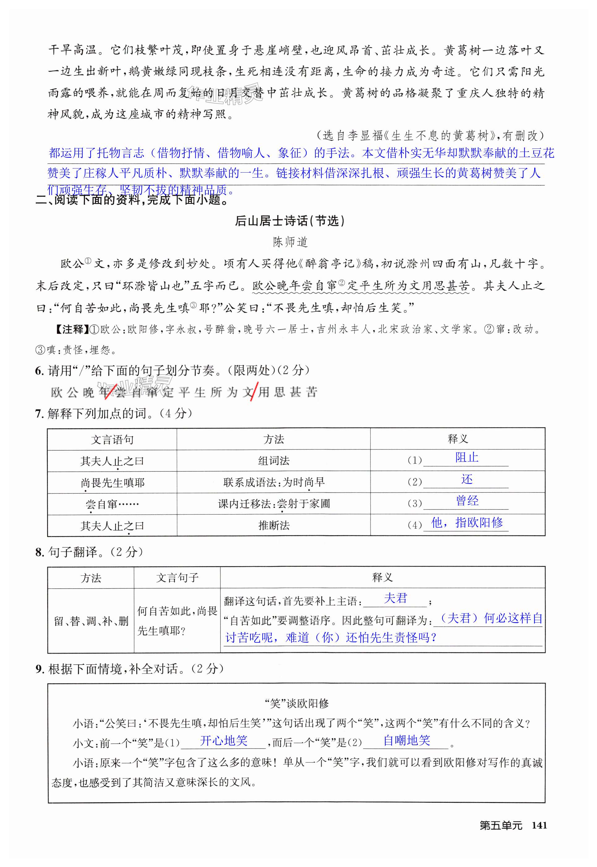 注:目前有些书本章节名称可能整理的还不是很完善,但都是按照顺序排列的,请同学们按照顺序仔细查找。练习册 2025年启东中学作业本七年级语文下册人教版宿迁专版 答案主要是用来给同学们做完题方便对答案用的,请勿直接抄袭。