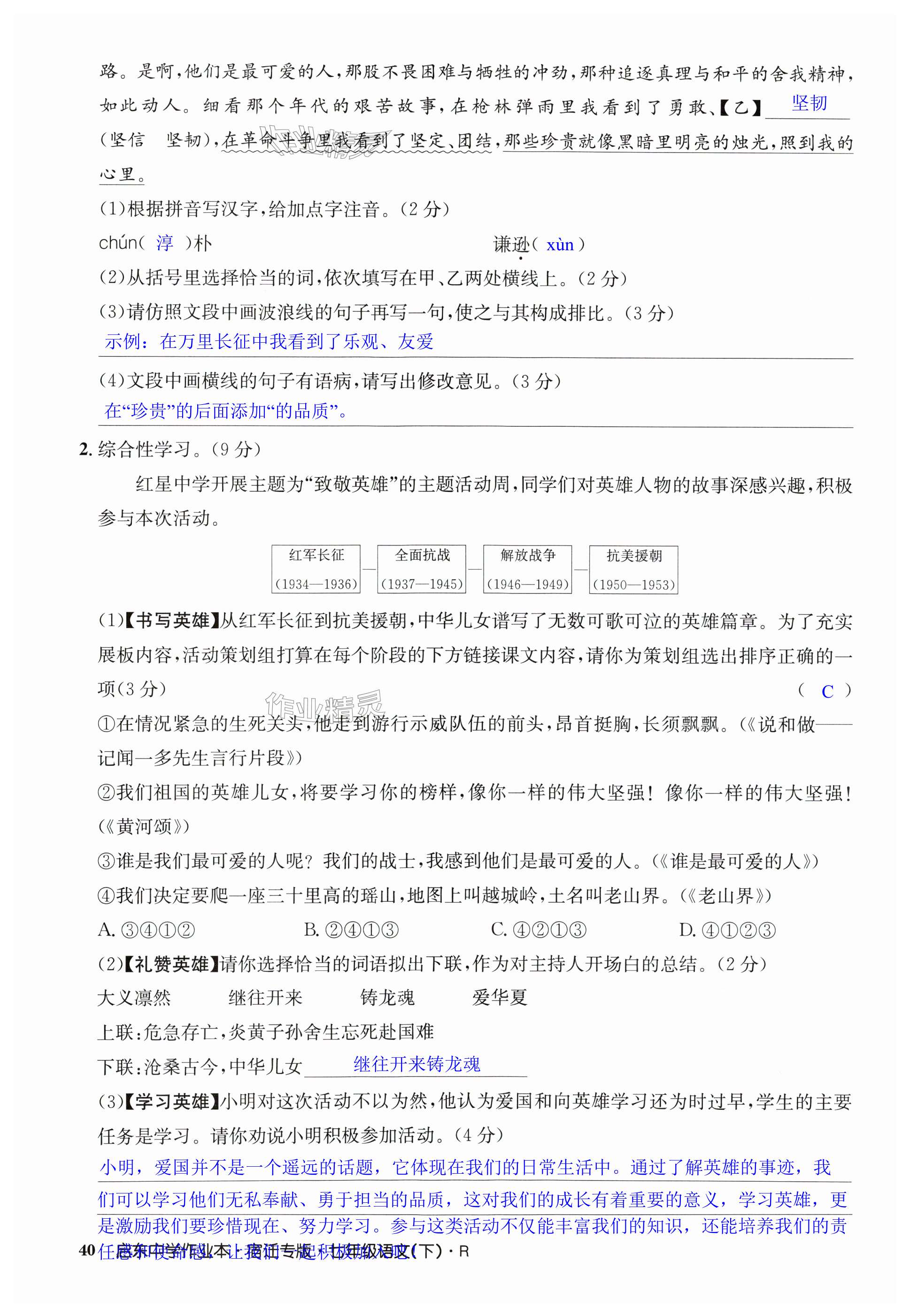 注:目前有些书本章节名称可能整理的还不是很完善,但都是按照顺序排列的,请同学们按照顺序仔细查找。练习册 2025年启东中学作业本七年级语文下册人教版宿迁专版 答案主要是用来给同学们做完题方便对答案用的,请勿直接抄袭。