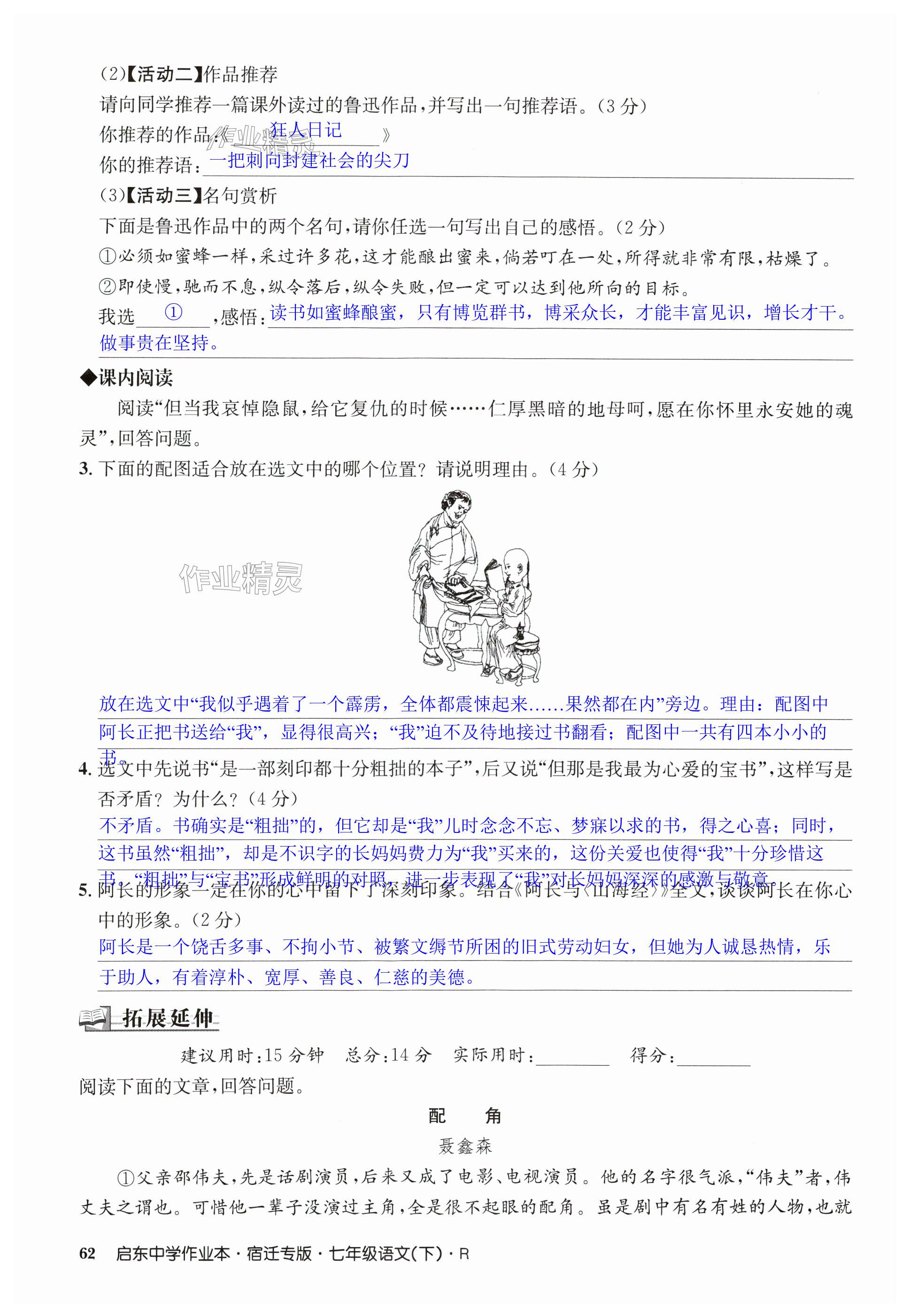 注:目前有些书本章节名称可能整理的还不是很完善,但都是按照顺序排列的,请同学们按照顺序仔细查找。练习册 2025年启东中学作业本七年级语文下册人教版宿迁专版 答案主要是用来给同学们做完题方便对答案用的,请勿直接抄袭。