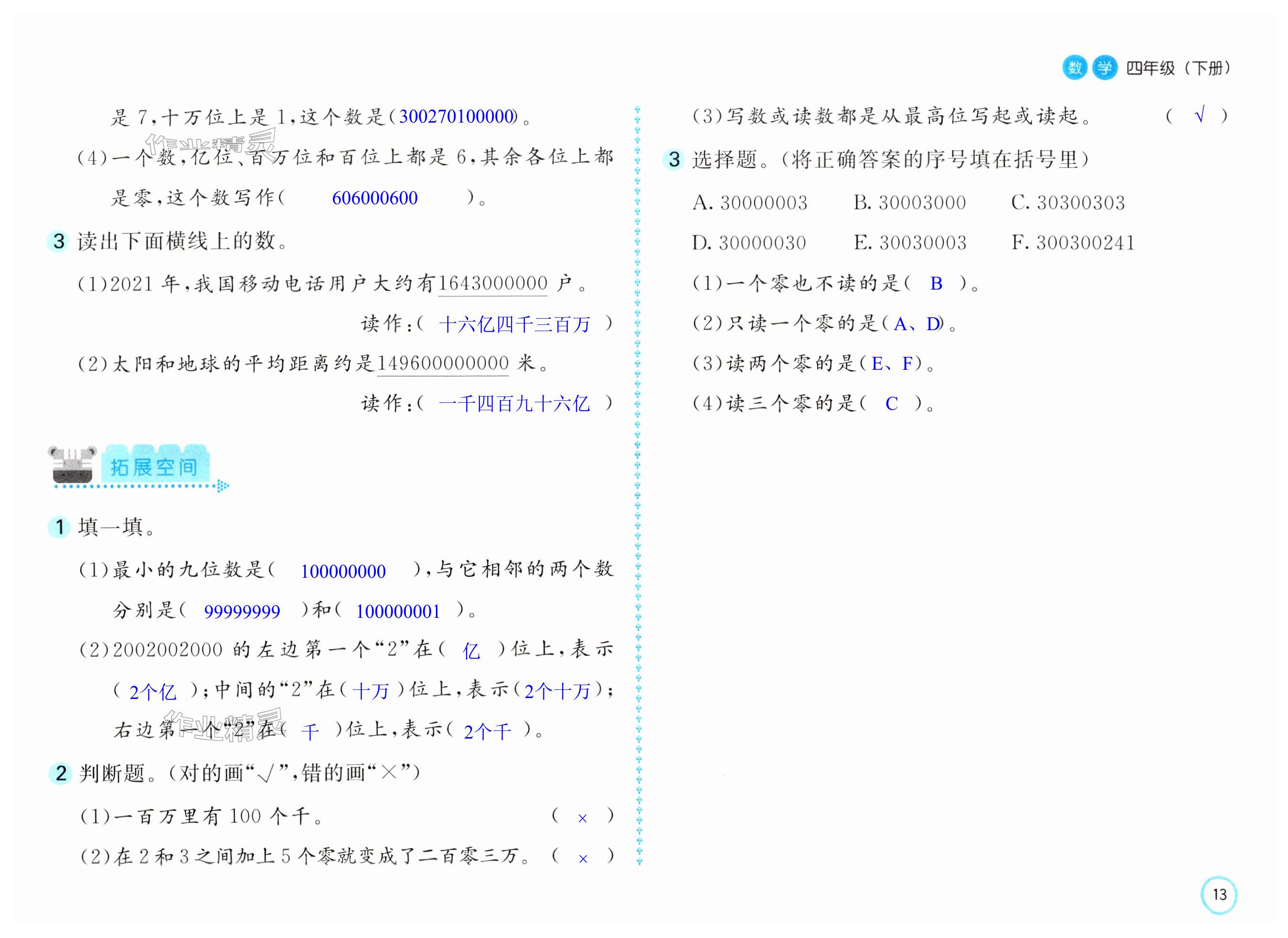 注:目前有些书本章节名称可能整理的还不是很完善,但都是按照顺序排列的,请同学们按照顺序仔细查找。练习册 2025年新编基础训练四年级数学下册苏教版 答案主要是用来给同学们做完题方便对答案用的,请勿直接抄袭。