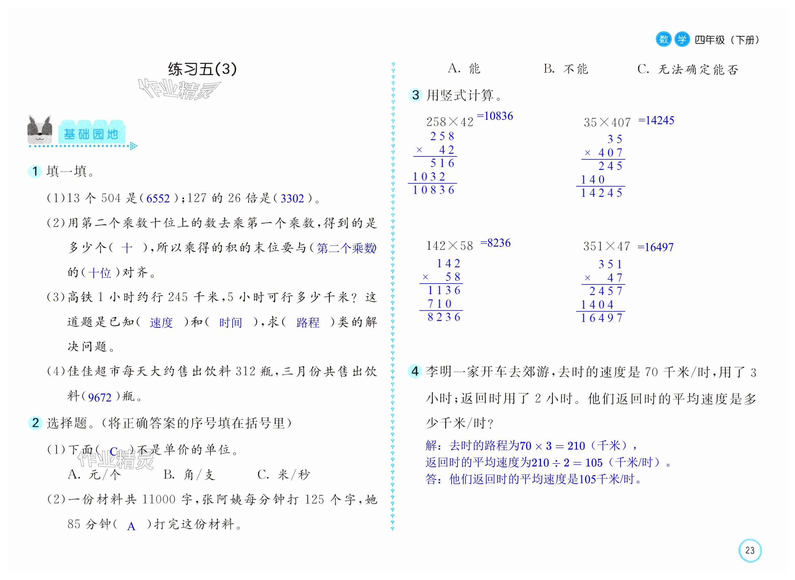 注:目前有些书本章节名称可能整理的还不是很完善,但都是按照顺序排列的,请同学们按照顺序仔细查找。练习册 2025年新编基础训练四年级数学下册苏教版 答案主要是用来给同学们做完题方便对答案用的,请勿直接抄袭。