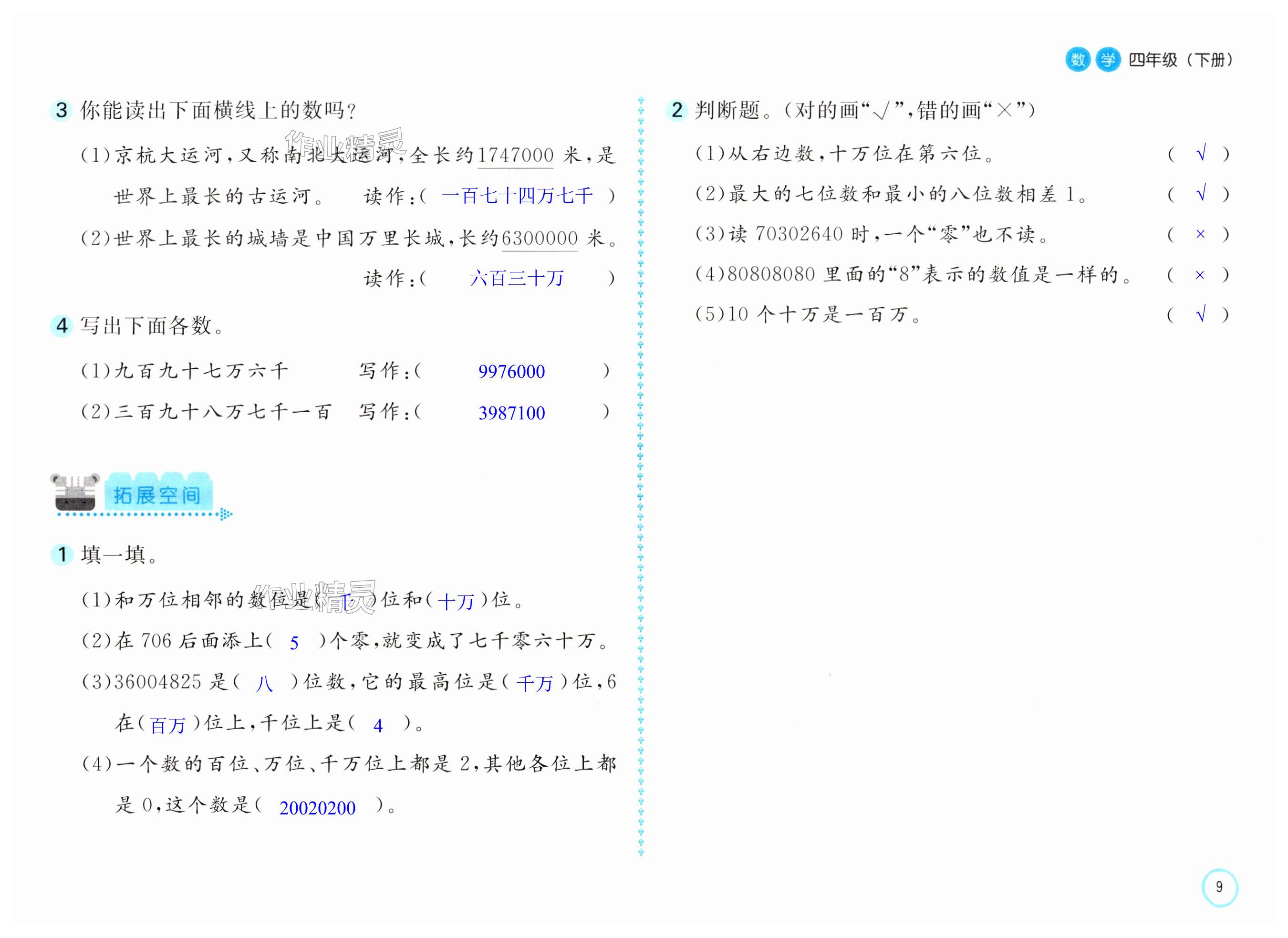 注:目前有些书本章节名称可能整理的还不是很完善,但都是按照顺序排列的,请同学们按照顺序仔细查找。练习册 2025年新编基础训练四年级数学下册苏教版 答案主要是用来给同学们做完题方便对答案用的,请勿直接抄袭。