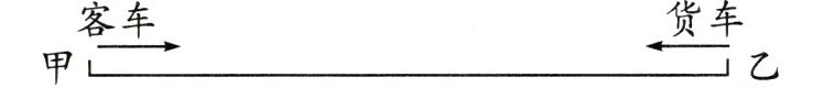 4.甲、乙两地间的公路长450千米。一辆客车和一辆货车分别从甲、乙两地同时出发,相向而行,货车的速度是客车的$\frac{4}{5}$。相遇时客车和货车各行驶了多少千米?(先在图中画一画,再解答)