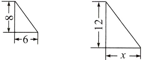 4.把左边的图形按比例放大或缩小后得到右边的图形,求未知数x。(单位:cm)