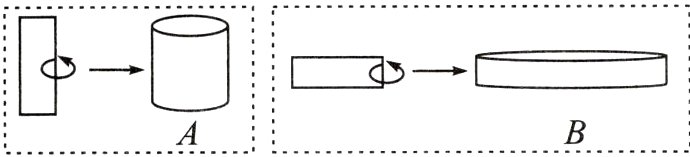[解析]以长方形的长为轴旋转一周,得到的圆柱的底面半径等于长方形的宽,高等于长方形的长,所以圆柱A的底面直径是4厘米,高是5厘米;以长方形的宽为轴旋转一周,得到的圆柱的底面半径等于长方形的长,高等于长方形的宽,所以圆柱B的底面直径是10厘米,高是2厘米。
