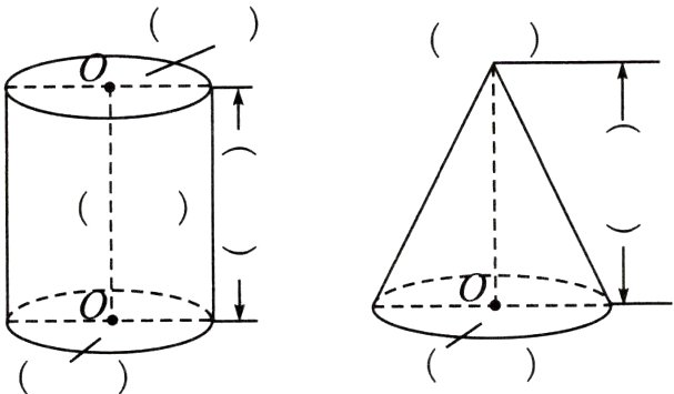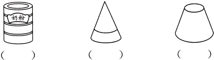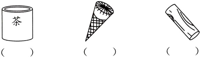 1. 下面物体的形状是圆柱的在括号里画“○”,是圆锥的在括号里画“△”。