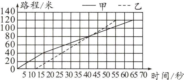 4. 甲、乙两人比赛溜冰,全程120米,乙让甲先出发10秒,两人溜的路程和时间的关系如图所示: