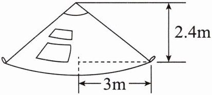 3. 如图,一个近似于圆锥形的野营帐篷,从里面量,它的底面半径是3m,高是2.4m。帐篷里面的空间有多大?