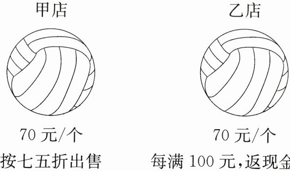 7. 金山小学六(1)班40名同学为了备战学校运动会排球垫球比赛,计划每人购买一个排球。甲、乙两个体育用品店采取不同的促销方式销售这种排球。他们到哪家店购买合算?(6分)