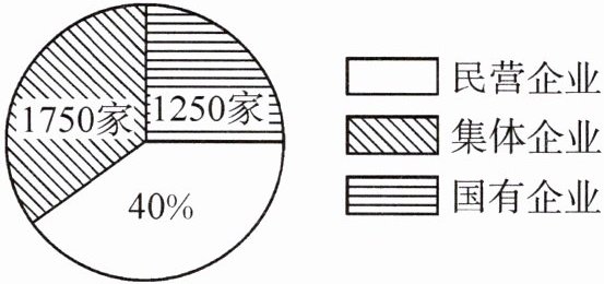 解析:观察扇形统计图发现,民营企业占企业总数的40%,则集体企业和国有企业共占企业总数的1 - 40% = 60%,又已知集体企业有1750家,国有企业有1250家,则集体企业和国有企业共有1750 + 1250 = 3000(家),则企业总数为3000÷60% = 5000(家),从而能分别计算出集体企业、国有企业的占比。