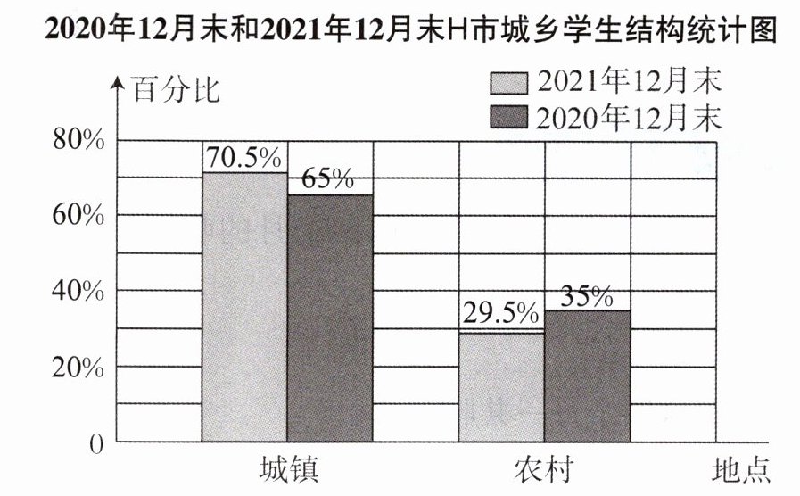 4. 2021年H市城镇学生人数为28.2万人,比2020年增加了1.8万人。