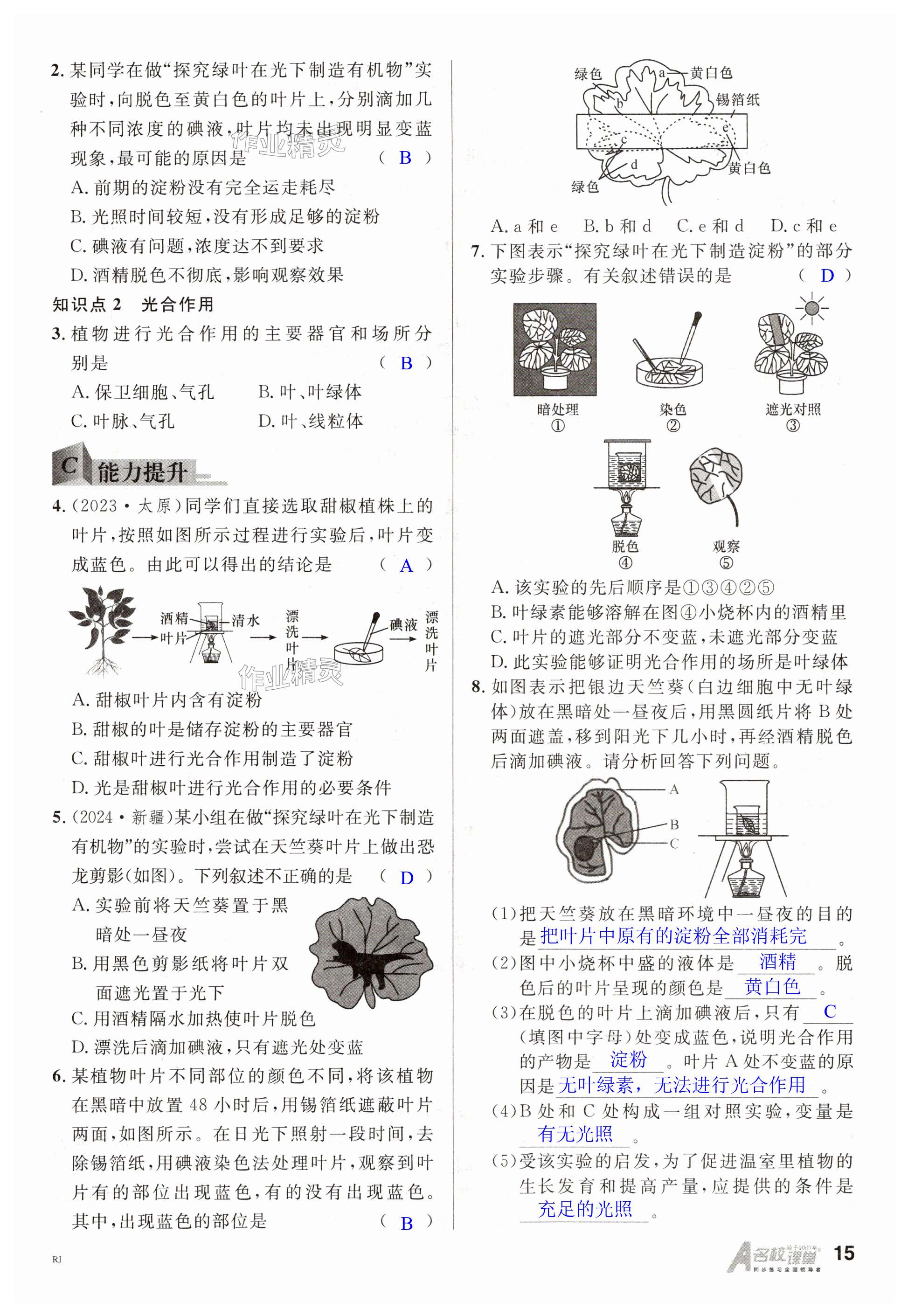 注:目前有些书本章节名称可能整理的还不是很完善,但都是按照顺序排列的,请同学们按照顺序仔细查找。练习册 2025年名校课堂七年级生物下册人教版 答案主要是用来给同学们做完题方便对答案用的,请勿直接抄袭。