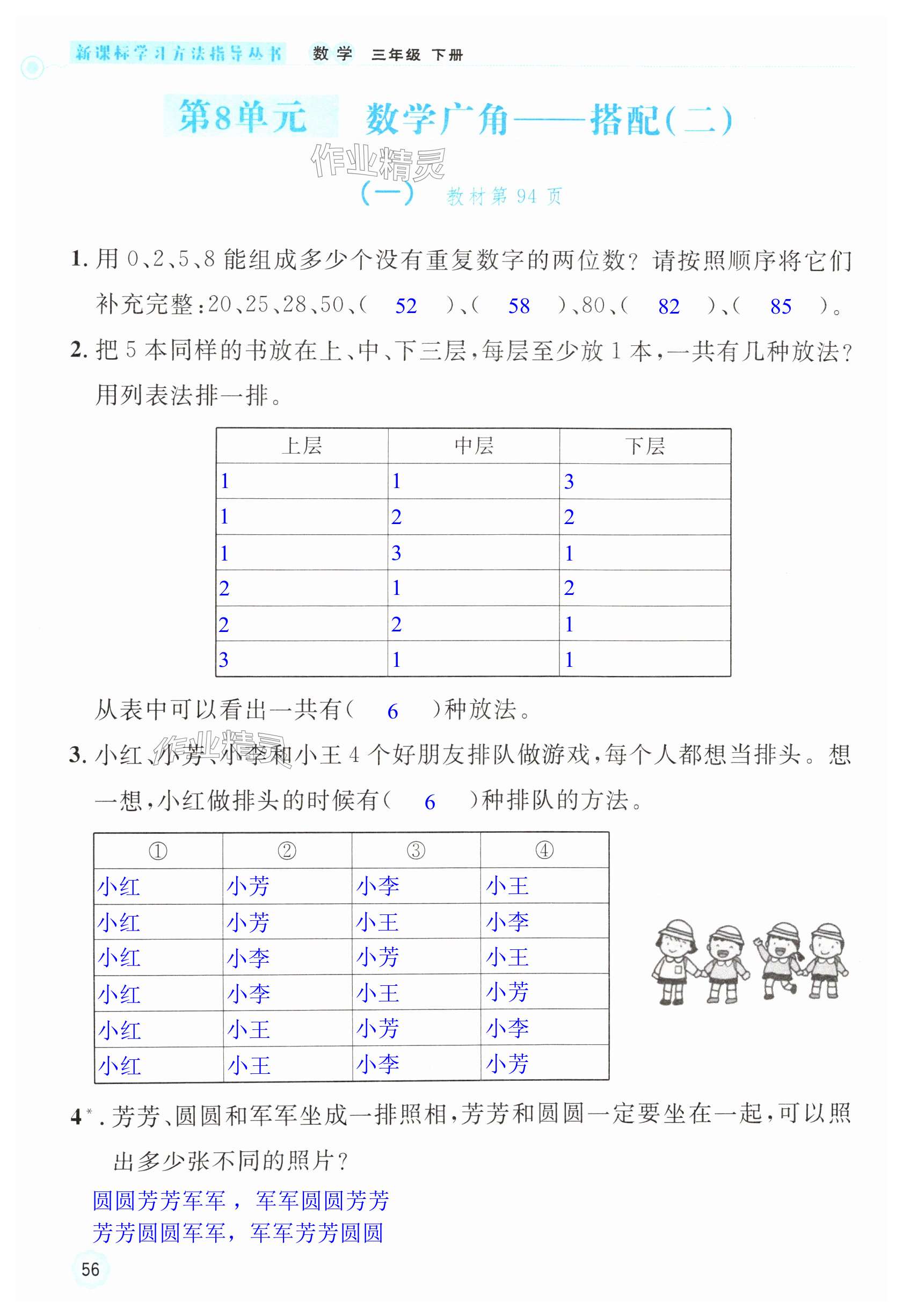注:目前有些书本章节名称可能整理的还不是很完善,但都是按照顺序排列的,请同学们按照顺序仔细查找。练习册 2025年新课标学习方法指导丛书三年级数学下册人教版 答案主要是用来给同学们做完题方便对答案用的,请勿直接抄袭。