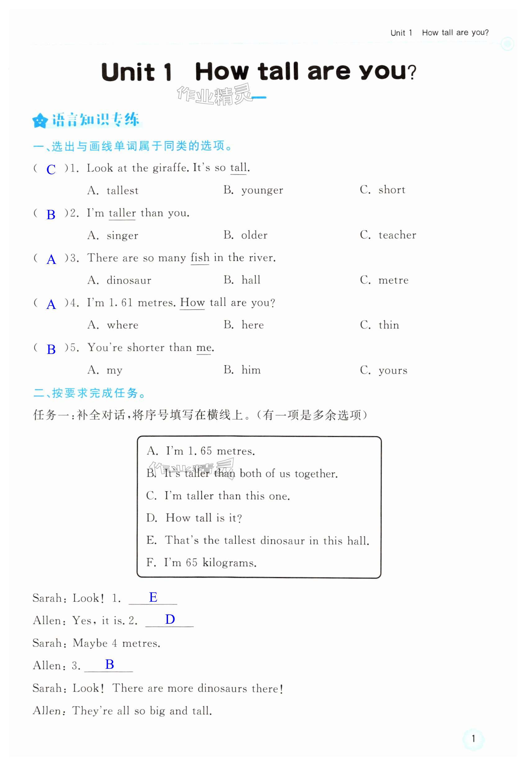 注:目前有些书本章节名称可能整理的还不是很完善,但都是按照顺序排列的,请同学们按照顺序仔细查找。练习册 2025年新课标学习方法指导丛书六年级英语下册人教版 答案主要是用来给同学们做完题方便对答案用的,请勿直接抄袭。