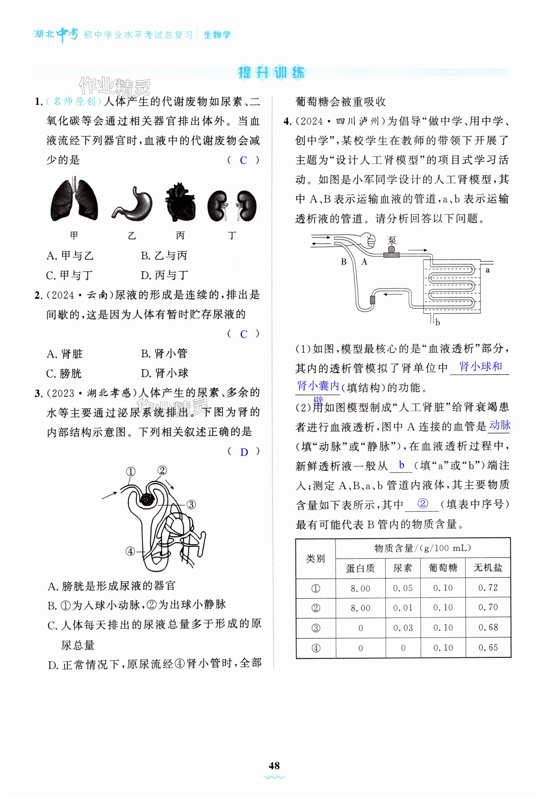 注:目前有些书本章节名称可能整理的还不是很完善,但都是按照顺序排列的,请同学们按照顺序仔细查找。练习册 2025年湖北中考初中学业水平考试总复习生物通用版 答案主要是用来给同学们做完题方便对答案用的,请勿直接抄袭。