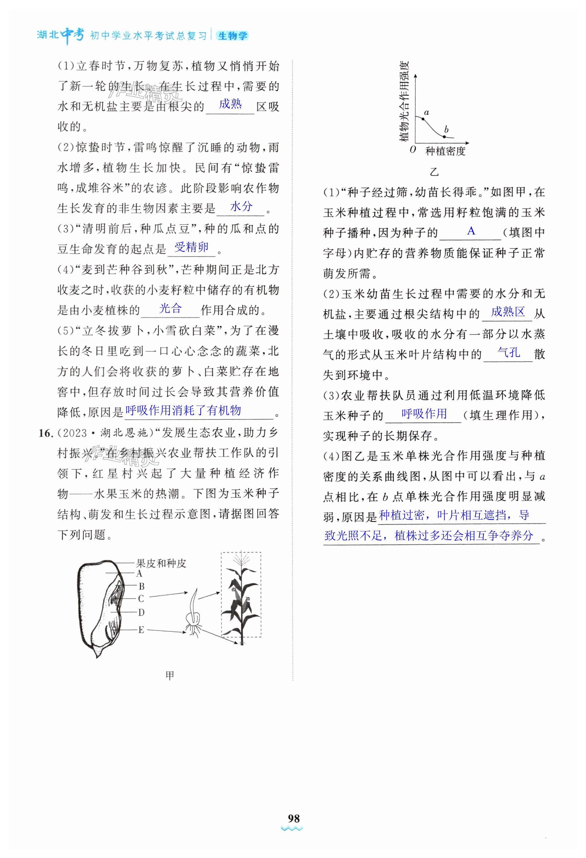 注:目前有些书本章节名称可能整理的还不是很完善,但都是按照顺序排列的,请同学们按照顺序仔细查找。练习册 2025年湖北中考初中学业水平考试总复习生物通用版 答案主要是用来给同学们做完题方便对答案用的,请勿直接抄袭。