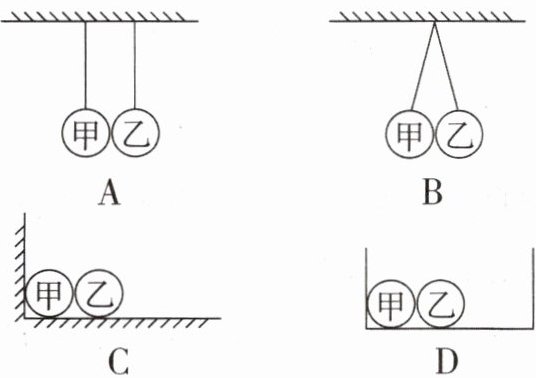 3. 在下图中,甲、乙两球相互间一定有弹力作用的是( ) .