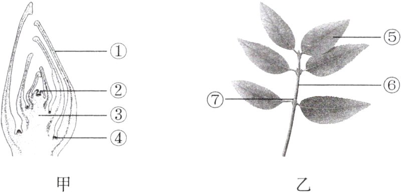 (2) 叶芽顶端的细胞不断分裂,使图甲中的[ ]___________逐渐伸长,发育成图乙中的⑥。图甲中的②是芽轴侧面的突起,发育成[ ]幼叶,幼叶发育成图乙中的⑤。