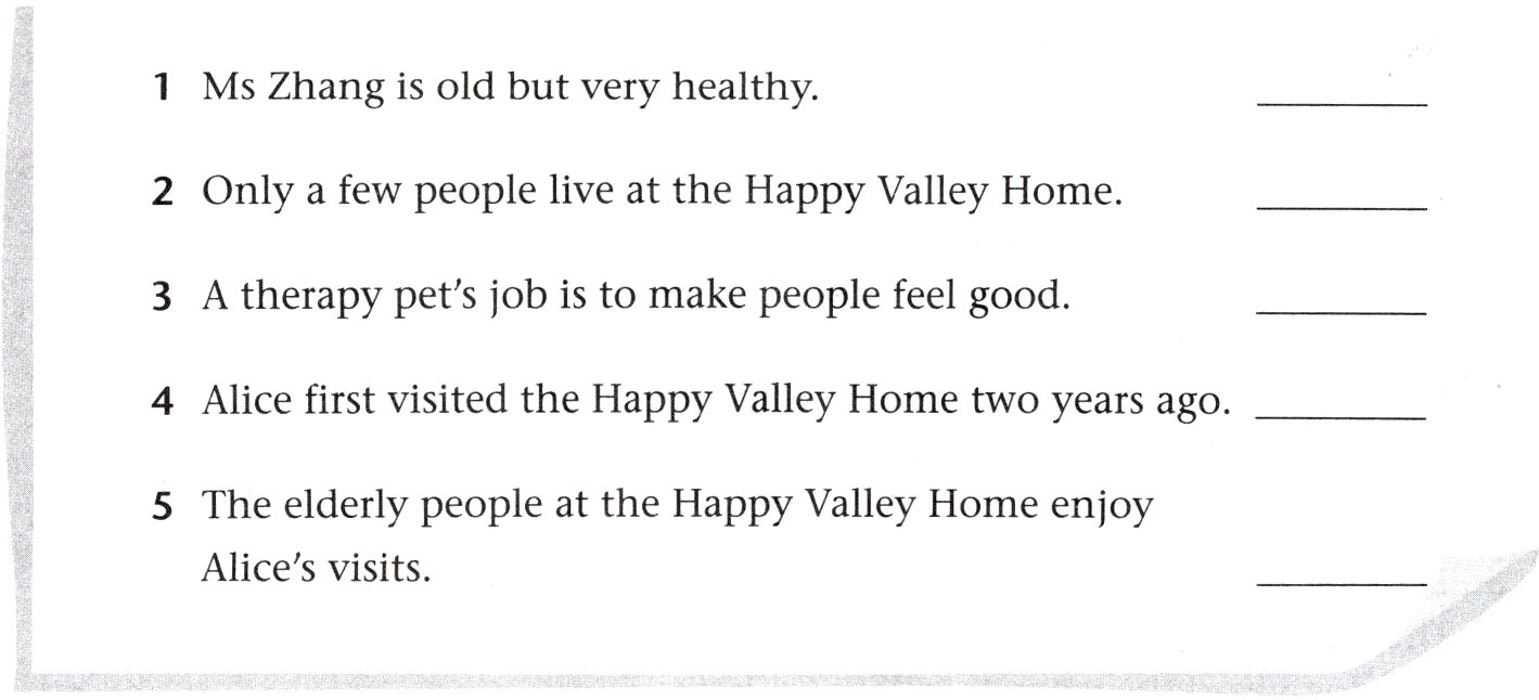 5 The elderly people at the Happy Valley Home enjoy Alice’s visits. ________
