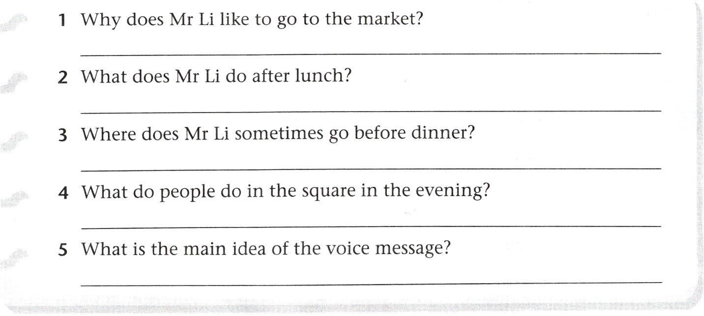 A Mr Li lives in Greenwood. He left a voice message for his grandson. Read his voice message and answer the questions.