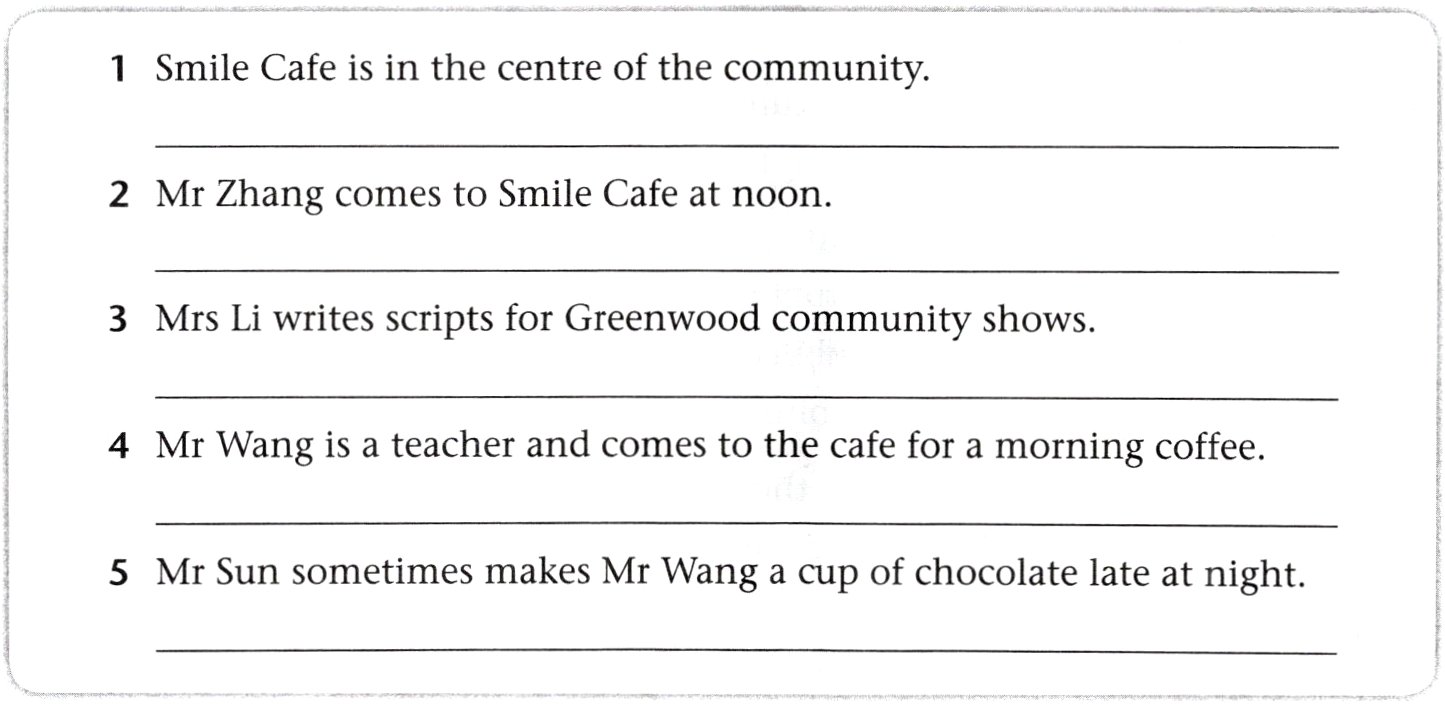 4 Mr Wang is a teacher and comes to the cafe for a morning coffee.