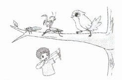 A young man heard about this. He wanted to stop the king of Wu. He came up with an idea. Every morning, he came to the palace garden with a slingshot(弹弓). The king noticed him and asked what he was doing.