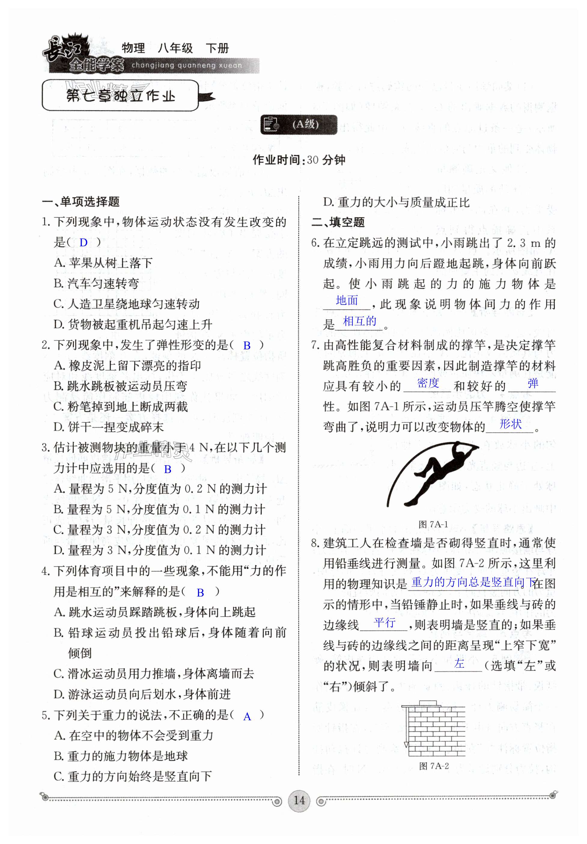 注:目前有些书本章节名称可能整理的还不是很完善,但都是按照顺序排列的,请同学们按照顺序仔细查找。练习册 2025年长江全能学案同步练习册八年级物理下册人教版 答案主要是用来给同学们做完题方便对答案用的,请勿直接抄袭。