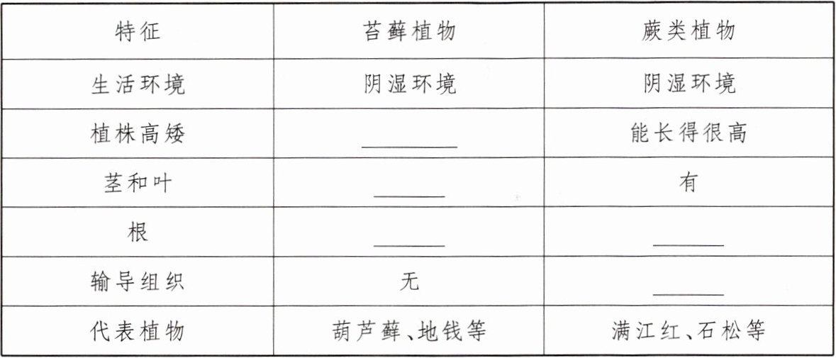 【解析】苔藓植物有茎、叶,但没有真正的根,没有输导组织。