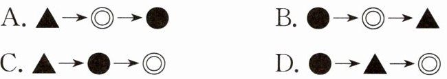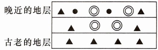 3. 【证据推理】化石是研究生物进化最直接最可靠的证据。若▲、○、●表示具有亲缘关系的三类生物,如图表示这三类生物的化石在未经变动的不同地层中的出现情况,则三类生物的进化关系最可能的是(