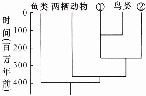 5. (2023·包头)脊椎动物各类群的进化关系如图,图中①和②分别是(