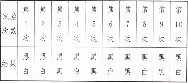 11. 【探究实践】在学习《人的性别遗传》时,实验中学八(1)班的同学用黑、白围棋子模拟生殖细胞来探究人类生男生女的概率问题。他们做了如下模拟实验: