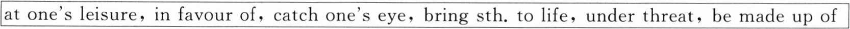 at one’s leisure,in favour of,catch one’s eye,bring sth. to life,under threat,be made up of