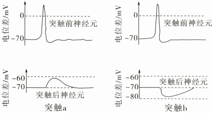 11.研究人员对突触a、b的突触前神经元给予相同的电刺激,通过微电极分别测量两个突触的突触前神经元、突触后神经元的电位变化,结果如图所示。下列分析合理的是 ( )
