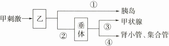 C. 若甲刺激为寒冷条件,则“甲刺激→乙→垂体→甲状腺”过程中存在分级调节