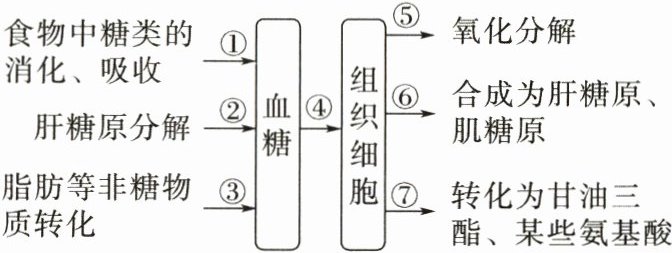D.当①+②+③>⑤+⑥+⑦时,人就会患糖尿病