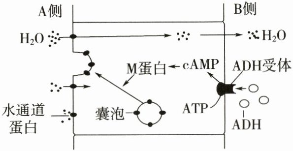 B.ADH 可通过 M 蛋白促进囊泡向细胞膜移动并发生融合,增加膜上水通道蛋白的数量