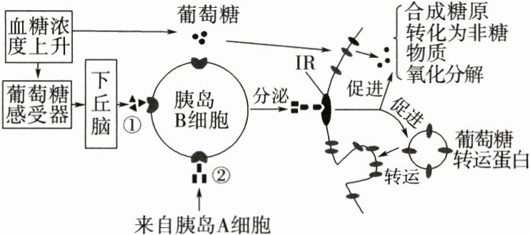 (1)图中参与刺激胰岛 B 细胞分泌胰岛素的信号分子除葡萄糖浓度变化外,还有①__________、②__________。