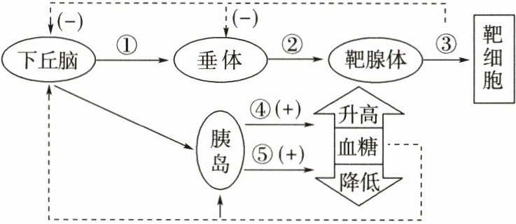 (2)在血糖的调节过程中,④是__________,④与⑤的作用关系表现为__________。