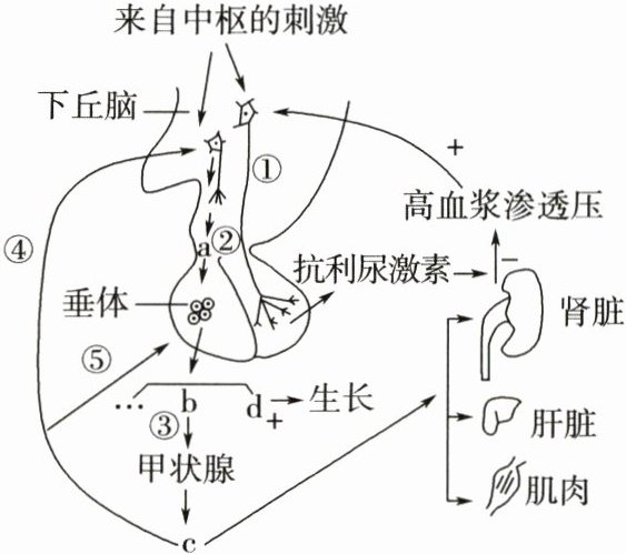 (1)下丘脑分泌的激素主要作用于垂体,请写出①代表的激素名称:____________________(答出一种即可)。此外,下丘脑还能分泌__________促进肾小管和集合管对水的重吸收。