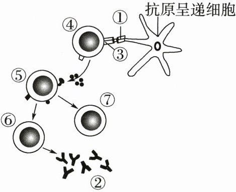8.下图为人体免疫细胞参与免疫反应的机制图解,其中①表示抗原,②③表示物质,④~⑦代表细胞。下列叙述错误的是 ( )