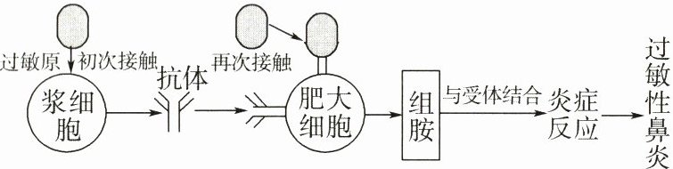 13.过敏性鼻炎容易引起鼻塞、流涕、打喷嚏以及鼻甲肿胀等症状。下图为过敏性鼻炎发病示意图,下列叙述错误的是 ( )