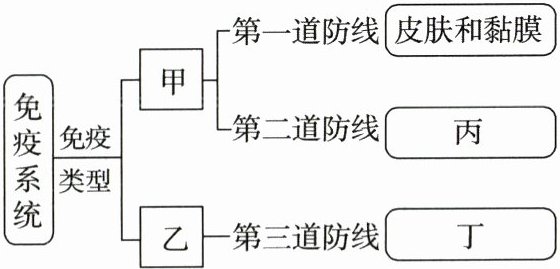 B.丙是指体液中的杀菌物质和淋巴细胞