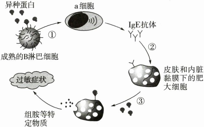 18.海鲜过敏的原因是由于海鲜中富含大量的异种蛋白,这些异种蛋白直接或间接激活免疫细胞,引起化学介质的释放,进而产生一系列复杂的化学反应。下图为海鲜过敏反应的机理示意图,下列有关叙述错误的是( )