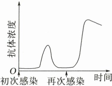 (3)病毒再次感染使机体内抗体浓度激增且保持较长时间(如图所示),此时抗体浓度激增的原因是______________________________。