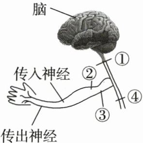 10.下图①~④表示麻醉剂阻断神经冲动传导的可能位置。如果病人有感觉,但手不能动,那么阻断的位置是 ( )