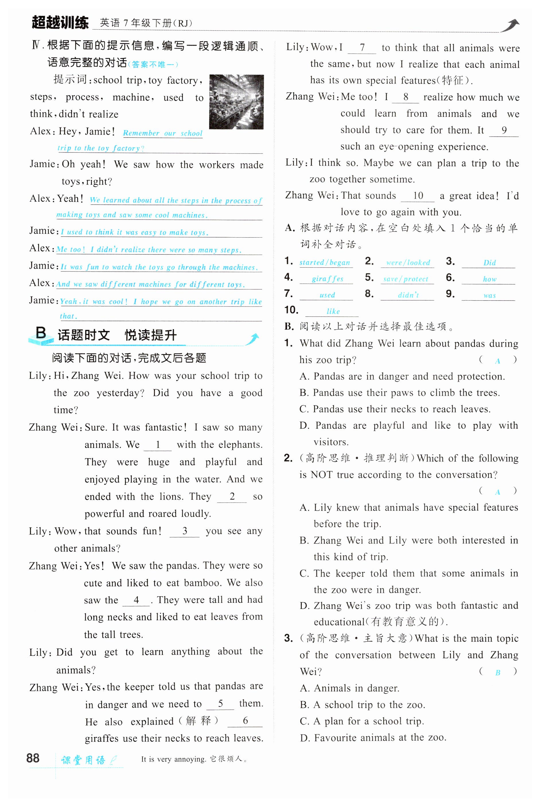 注:目前有些书本章节名称可能整理的还不是很完善,但都是按照顺序排列的,请同学们按照顺序仔细查找。练习册 2025年超越训练七年级英语下册人教版四川专版 答案主要是用来给同学们做完题方便对答案用的,请勿直接抄袭。