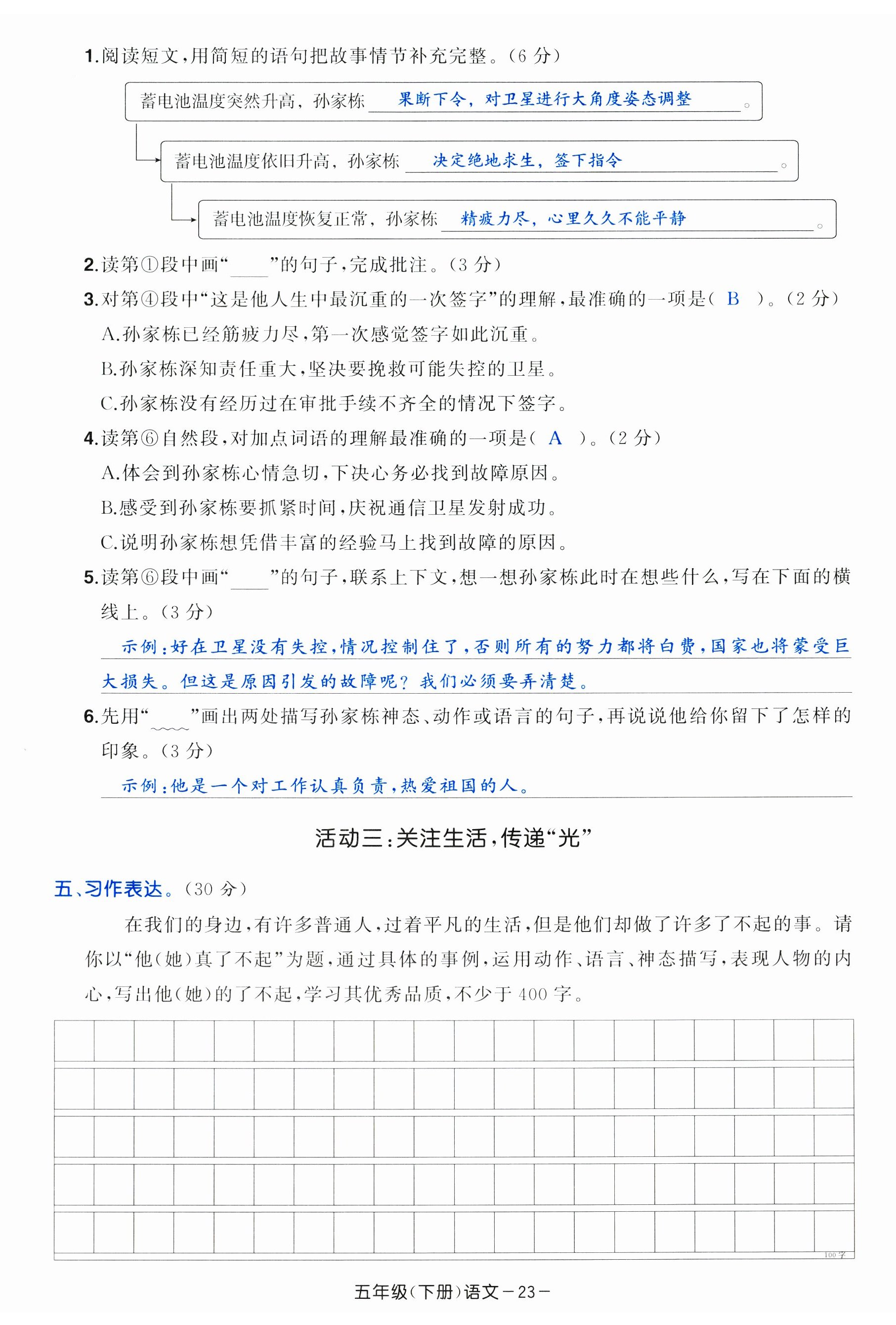 注:目前有些书本章节名称可能整理的还不是很完善,但都是按照顺序排列的,请同学们按照顺序仔细查找。练习册 2025年小学学习好帮手五年级语文下册人教版 答案主要是用来给同学们做完题方便对答案用的,请勿直接抄袭。