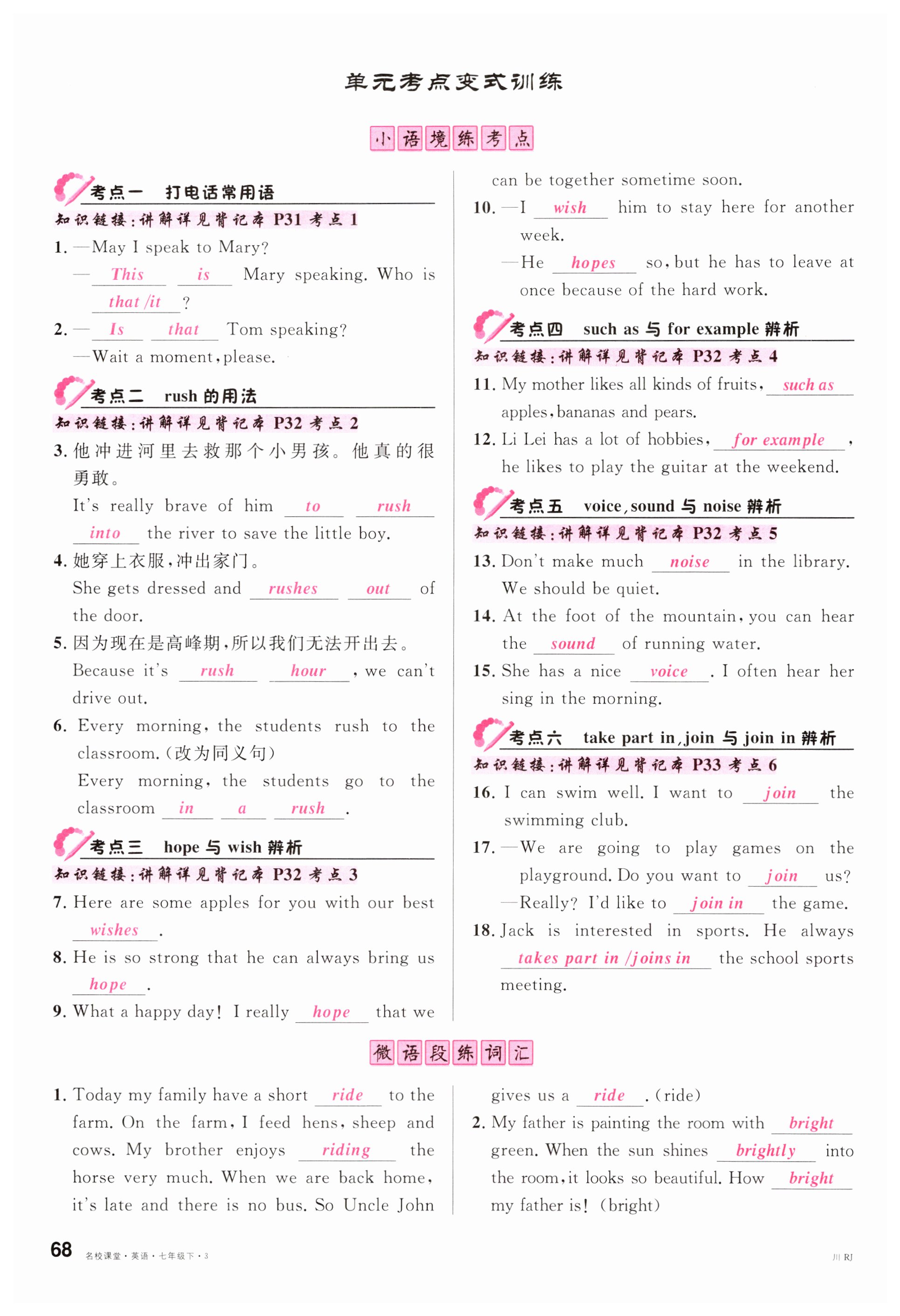 注:目前有些书本章节名称可能整理的还不是很完善,但都是按照顺序排列的,请同学们按照顺序仔细查找。练习册 2025年名校课堂七年级英语下册人教版四川专版 答案主要是用来给同学们做完题方便对答案用的,请勿直接抄袭。